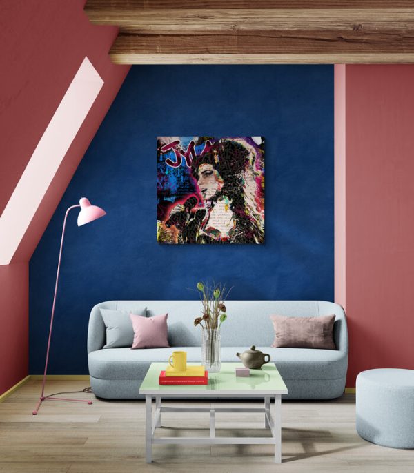 Amy Winehouse: an interplay of light, color, and intuition, captured in 100×100 cm of pure intensity. Printed on tempered safety glass, the artwork reveals its secrets with every glance: colors that seem deeply alive, clear, and permanently radiant. Our glass is seven times stronger than regular glass and twice as heavy as acrylic, ensuring every detail remains scratch-resistant, colorfast, and crystal clear. An eye-catcher that not only fills a room but also whispers a story that slowly unfolds.